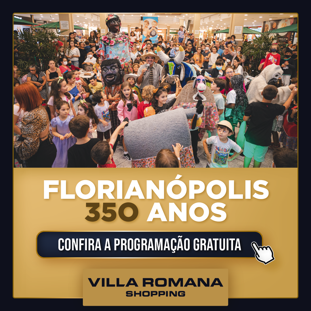 Venha comemorar o Aniversário de 350 anos de Florianópolis com atrações únicas e especiais no Villa Romana Shopping! Confira a programação: