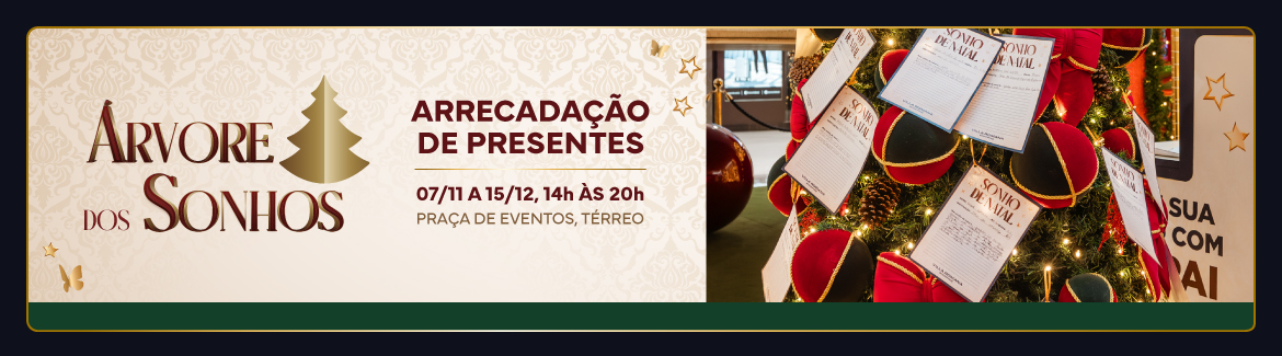 O clima de Natal já chegou ao Villa Romana Shopping e com ele a campanha Árvore dos Sonhos, que mais uma vez convida o público a espalhar gestos de solidariedade. A ação permite que os clientes adotem cartinhas e presenteiam crianças, idosos e pessoas em situação de vulnerabilidade social atendidas pela Serte, Casa da Criança, Casa Lar Luz do Caminho e Rede Com a Rua.