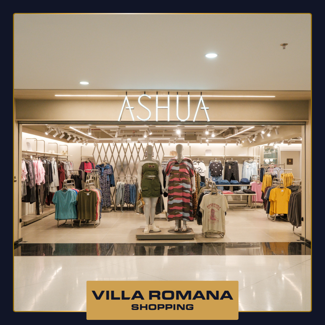 Inspirada no lifestyle praiano, a Ashua apresenta uma coleção repleta de peças leves e versáteis para os dias quentes. A marca, conhecida por seu foco em curve e plus size, captura a essência solar e descontraída das paisagens praianas, refletindo-a em cada detalhe das criações. Com 166,54m² a loja da marca está localizada no 3º andar do Villa Romana Shopping.