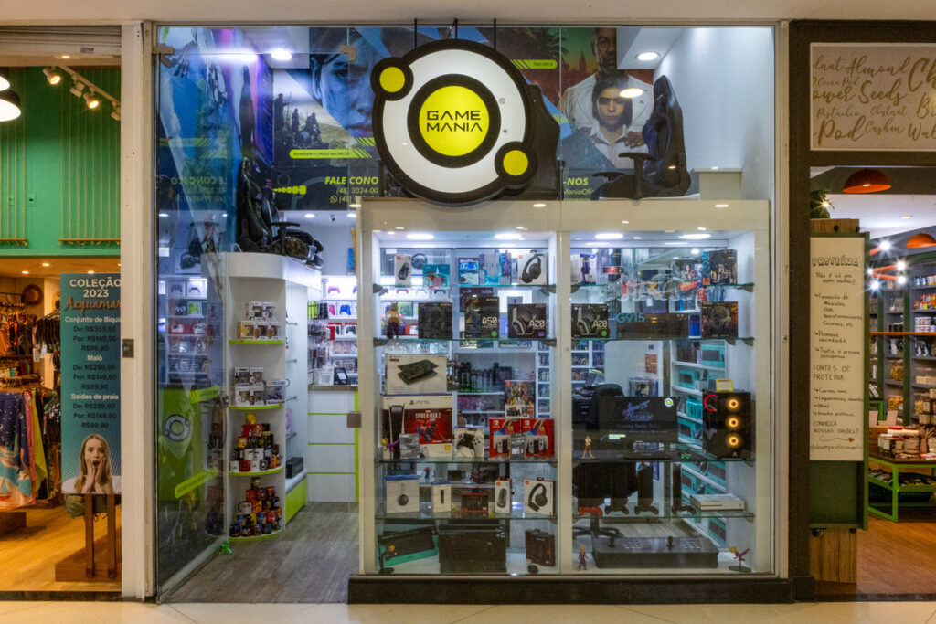 A Game Mania é uma loja voltada ao universo gamer, com uma ampla seleção de jogos, consoles, controles, brinquedos e presentes temáticos, incluindo itens personalizados de personagens e tecnologia.