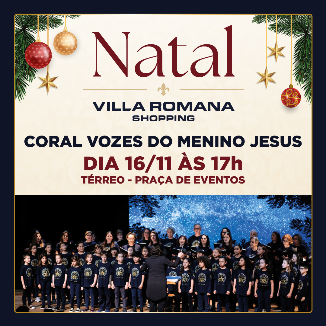 Venha se encantar com a apresentação natalina do Coral Vozes do Menino Jesus, com músicas clássicas e emocionantes! Traga a família e venha prestigiar! 16/11…