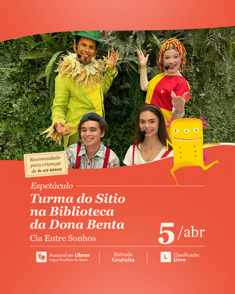 No dia 5 de abril, às 11h30, o shopping recebe ainda a apresentação gratuita do espetáculo infantil Turma do Sítio na Biblioteca da Dona Benta, encenado pela Cia Entre Sonhos, no Cinesystem. Inspirada no universo do Sítio do Picapau Amarelo, a peça reúne personagens como Emília, Visconde, Narizinho e Pedrinho em histórias que dialogam com lendas e o folclore da Ilha de Santa Catarina, com base nos contos de Franklin Cascaes. A apresentação é gratuita e conta com tradução em Libras.