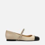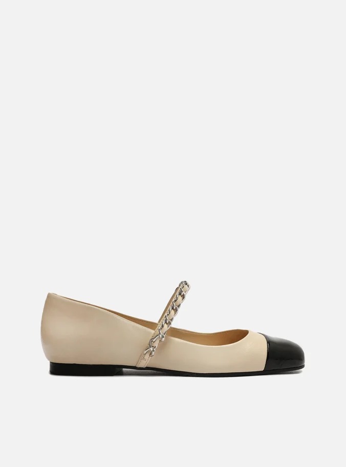 Sapatilha Off-White Couro Bico Quadrado Tira Corrente