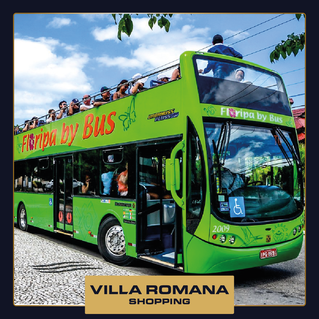 Já pensou em conhecer de perto os principais pontos turísticos da Ilha de Santa Catarina em um mesmo dia, sem estresse, com ar-condicionado e a bordo de um ônibus de dois andares com teto retrátil? Esta é a experiência proposta pelo Floripa By Bus, com passeios que saem de terça a domingo do Villa Romana Shopping, no bairro Santa Mônica.