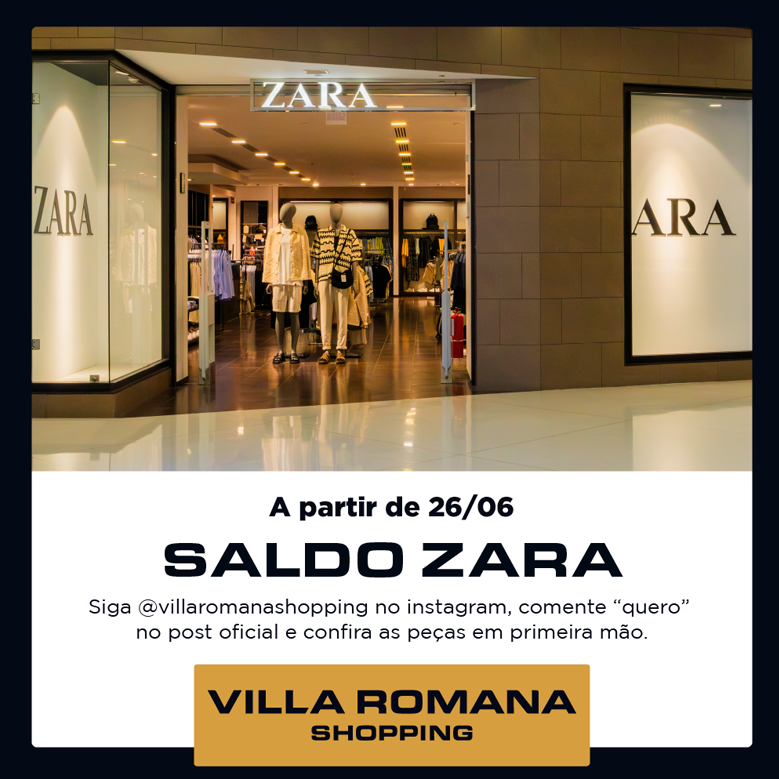 Montamos um catálogo com mais de 120 peças que estarão em promoção, disponíveis na Zara do Villa Romana Shopping, para você já programar as suas compras!