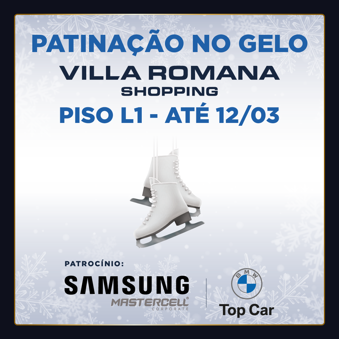O Villa Romana Shopping traz, a partir desta sexta, 6, uma novidade para adultos e crianças aproveitarem o Verão com diversão máxima e temperatura mínima. É a Iceland, uma pista de patinação no gelo com 200 metros quadrados.