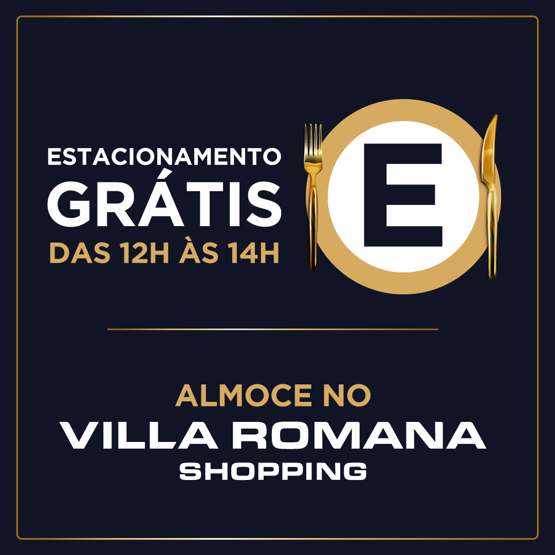 De 16 de julho até 30 de outubro de 2021, o estacionamento do Villa Romana Shopping será *gratuito das 12h às 14h, incluindo domingos e feriados (*exceto no estacionamento do hipermercado no andar subsolo).